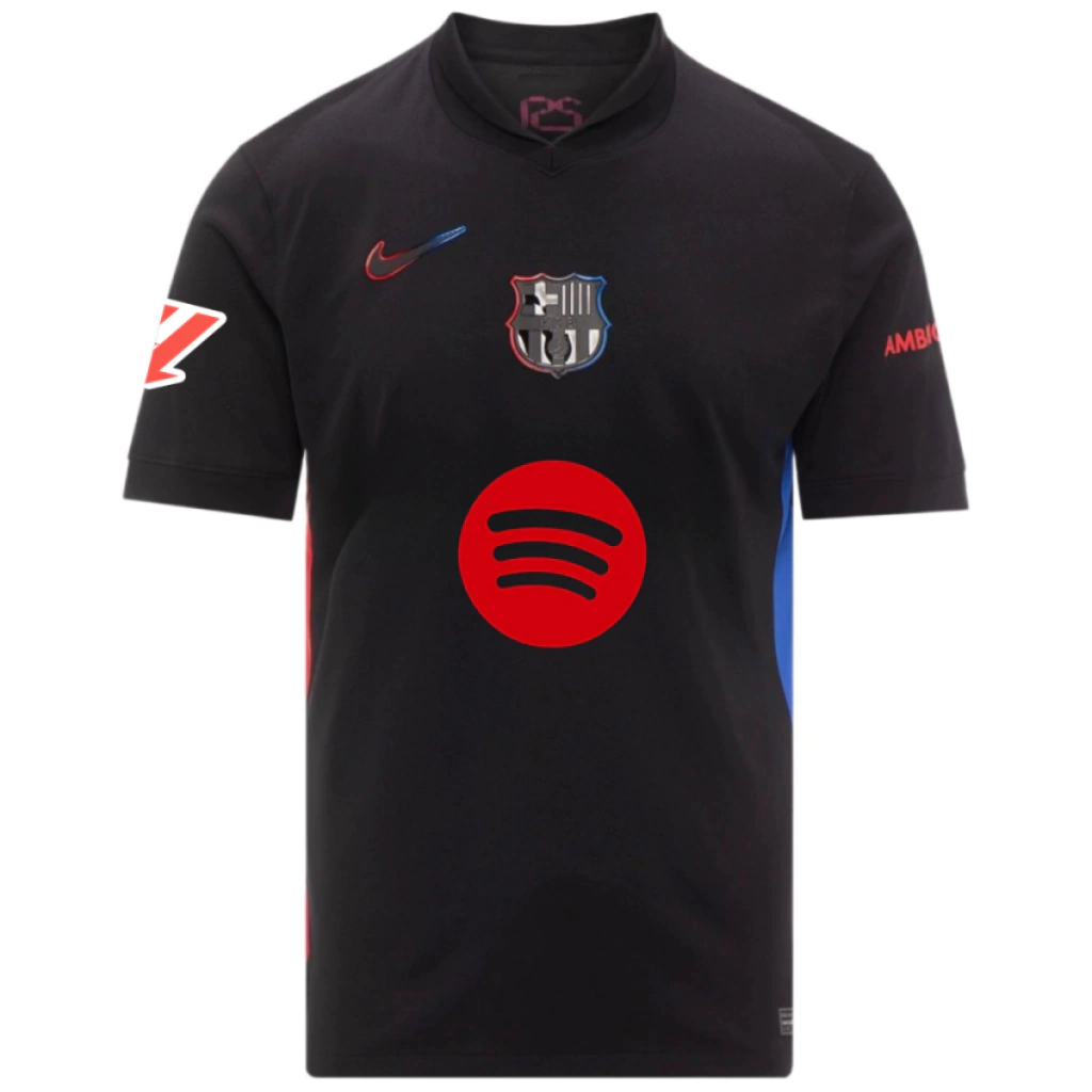A nova camisa reserva do Barcelona é preta e traz um estilo diferente que traz como destaque, o escudo, aplicado de forma centralizada, em TPU, com a parte central preta, com efeito brilhoso, e o contorno com um degrade, que mistura o lado esquerdo azul e o lado direito vermelho.O Swoosh da Nike aparece no mesmo estilo, no lado direito do peito, já o logo da Spotify é aplicado em vermelho, assim como o da Ambilight nas mangas. Nesta versão a camisa acompanha os Patchs da La Liga 2024/25.