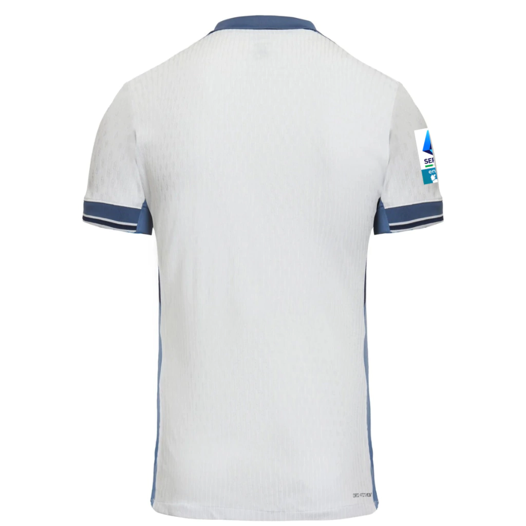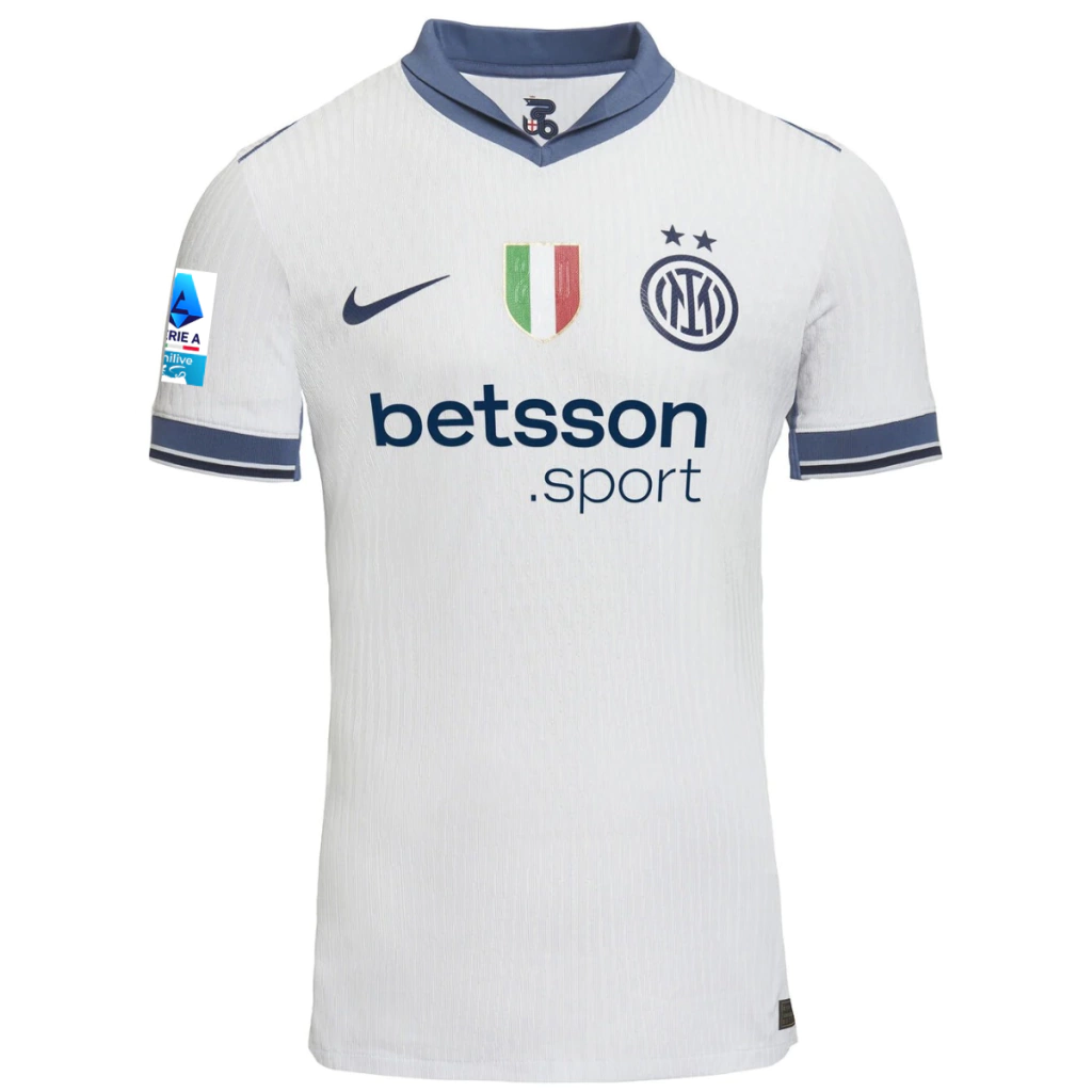 A nova camisa reserva da Inter de Milão é branca e traz o cinza complementar, cor que segundo o clube, se inspira na estética gótica e industrial de Milão, que tem sido usada ao longo dos anos como pano de fundo para novas coleções da moda milanesa.A gola traz o estilo “mini-polo”, muito usada pela Nike nesta temporada. Já os punhos são cinzas com frisos em preto e branco nas pontas. Já as laterais do kit ganham recortes em cinza.No centro do peito, o scudetto celebra os 20 títulos nacionais, também refletidos nas duas estrelas, que são novidades para a essa temporada, sobre o escudo, que ganha a cor cinza, assim como o logo da Nike e o patrocínio master. Nesta versão a camisa acompanha os Patchs de participação no Campeonato Italiano 2024/25.