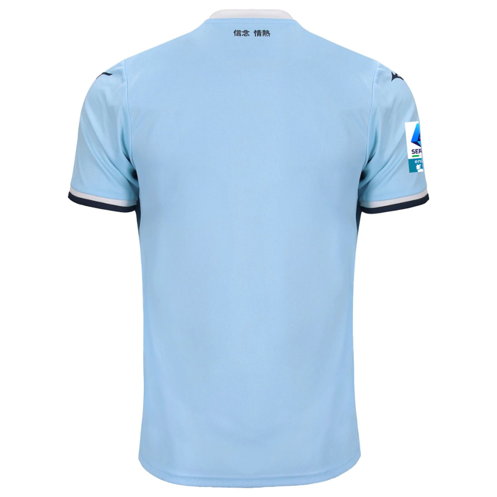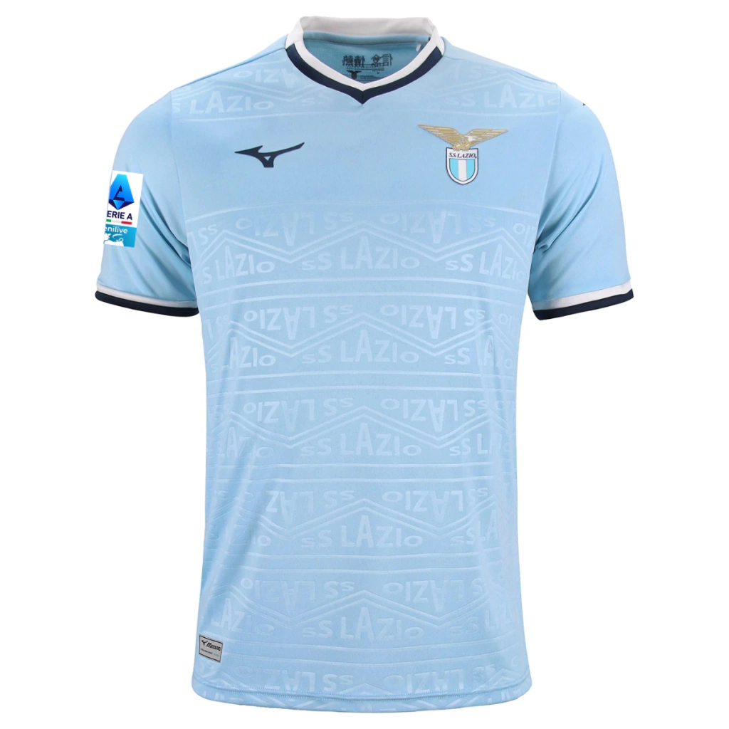 A nova camisa titular da Lazio é azul celeste e traz como destaque, em embossing, o nome do clube “SS Lazio” aplicado em sequência, junto à linhas duplas em zigue-zague, que são vistas no corpo do manto e nos ombros, sendo interrompidas apenas na região do peito, onde são aplicados o escudo e o logo da Mizuno, em azul escuro.A gola é V na cor branca, sendo que na parte frontal a cor se divide com o azul marinho, padrão que se repete nos punhos, que complementam as mangas em azul celeste. Nesta versão a camisa acompanha o Patch de participação no Campeonato Italiano 2024/25.