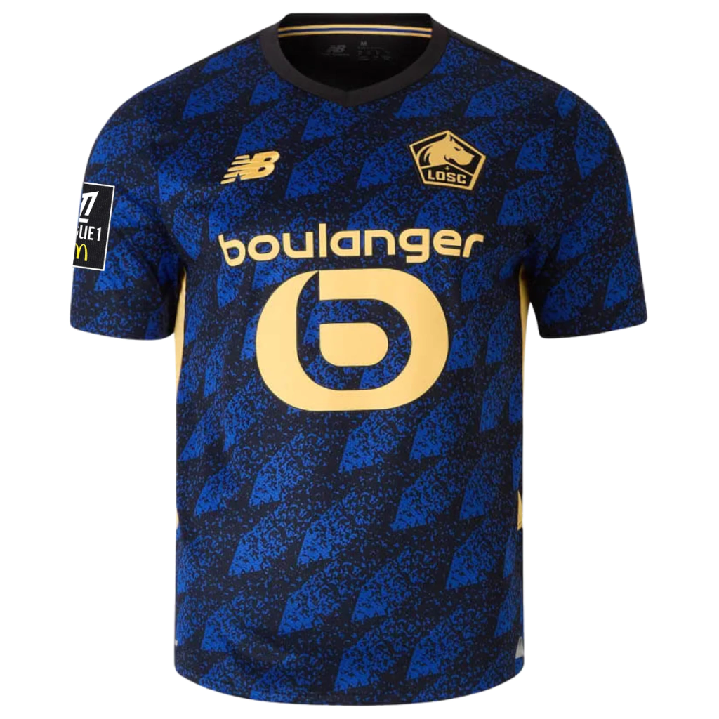 A nova terceira camisa do Lille para a temporada 25/26 traz um visual moderno e cheio de significado, adotando o azul como cor predominante — uma das três cores históricas do clube, herdada do Sporting Club Fivois. A combinação com preto e amarelo faz referência às cores de Flandres, região onde o Lille está localizado, resultando em um design com forte apelo urbano, ideal tanto para os gramados quanto para o dia a dia. A gola em formato V é preta, enquanto as laterais recebem recortes amarelos que dão contraste e dinamismo à peça. O tom amarelo também aparece no escudo do clube, no logotipo da New Balance e nos patrocinadores, garantindo unidade visual. Na nuca, um selo especial em amarelo reforça os elementos que conectam o clube às suas raízes e à sua identidade regional. nesta versão a camisa acompanha o patch de participação na Ligue 1.