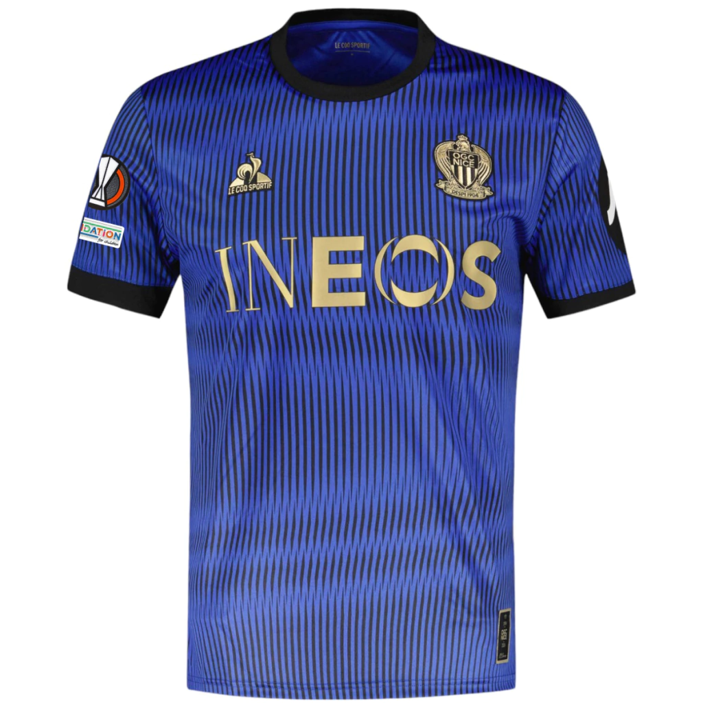 A nova camisa alternativa do Nice é predominantemente azul royal, retornando às origens do clube, em 1904, quando se chamava Gymnaste Club de Nice, e combinava a cor com o preto. Somente em 1919, com a fusão com o Football Vélo Club, que o vermelho e o preto foram adotados.O manto traz o azul de fundo e finas linhas pontiagudas em preto espalhadas pelo corpo, criando um efeito todo especial de onda. A gola e os punhos também trazem o preto. Na nuca, é escrito o lema do clube: “Issa Nissa”, em dourado.Nesta versão a camisa acompanha o patch de participação na Europa League 2024/25.