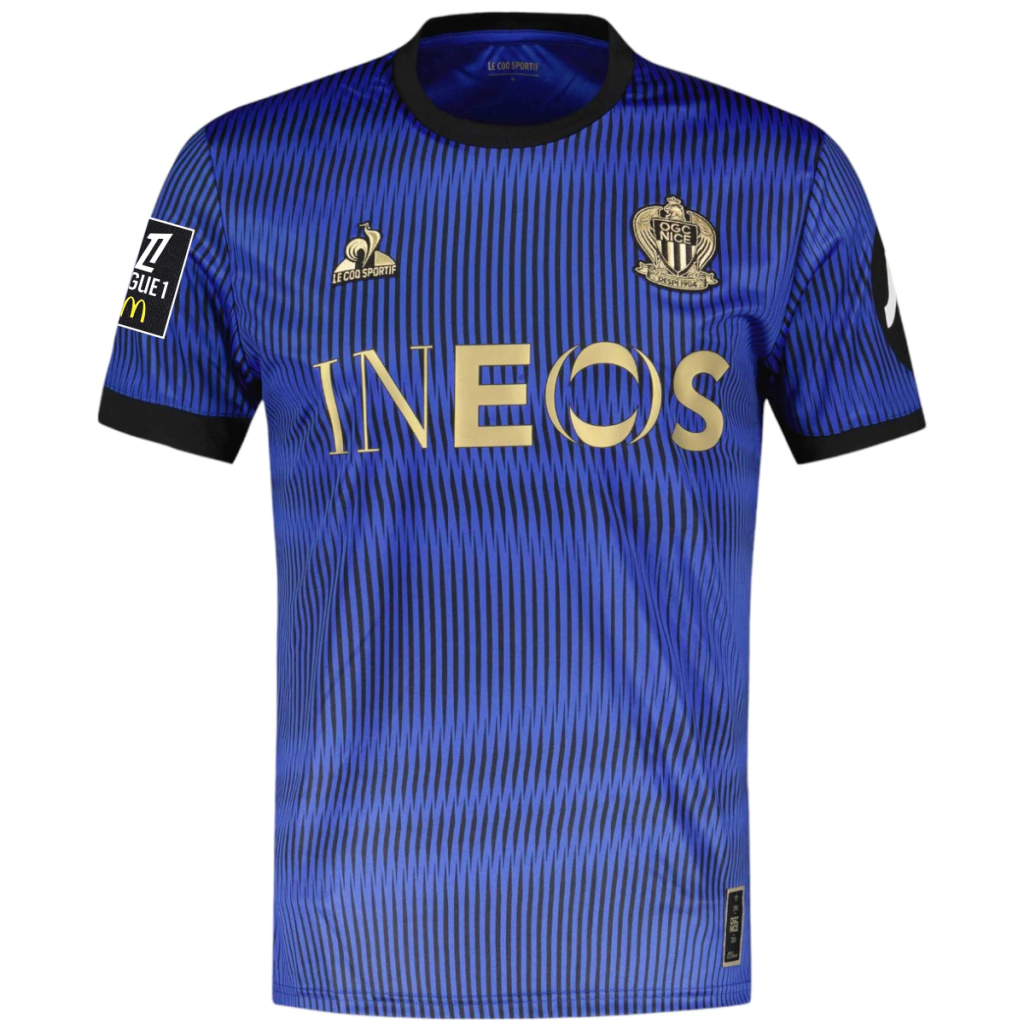 A nova camisa alternativa do Nice é predominantemente azul royal, retornando às origens do clube, em 1904, quando se chamava Gymnaste Club de Nice, e combinava a cor com o preto. Somente em 1919, com a fusão com o Football Vélo Club, que o vermelho e o preto foram adotados.O manto traz o azul de fundo e finas linhas pontiagudas em preto espalhadas pelo corpo, criando um efeito todo especial de onda. A gola e os punhos também trazem o preto. Na nuca, é escrito o lema do clube: “Issa Nissa”, em dourado.Nesta versão a camisa acompanha o patch de participação na Ligue 1 2024/25.