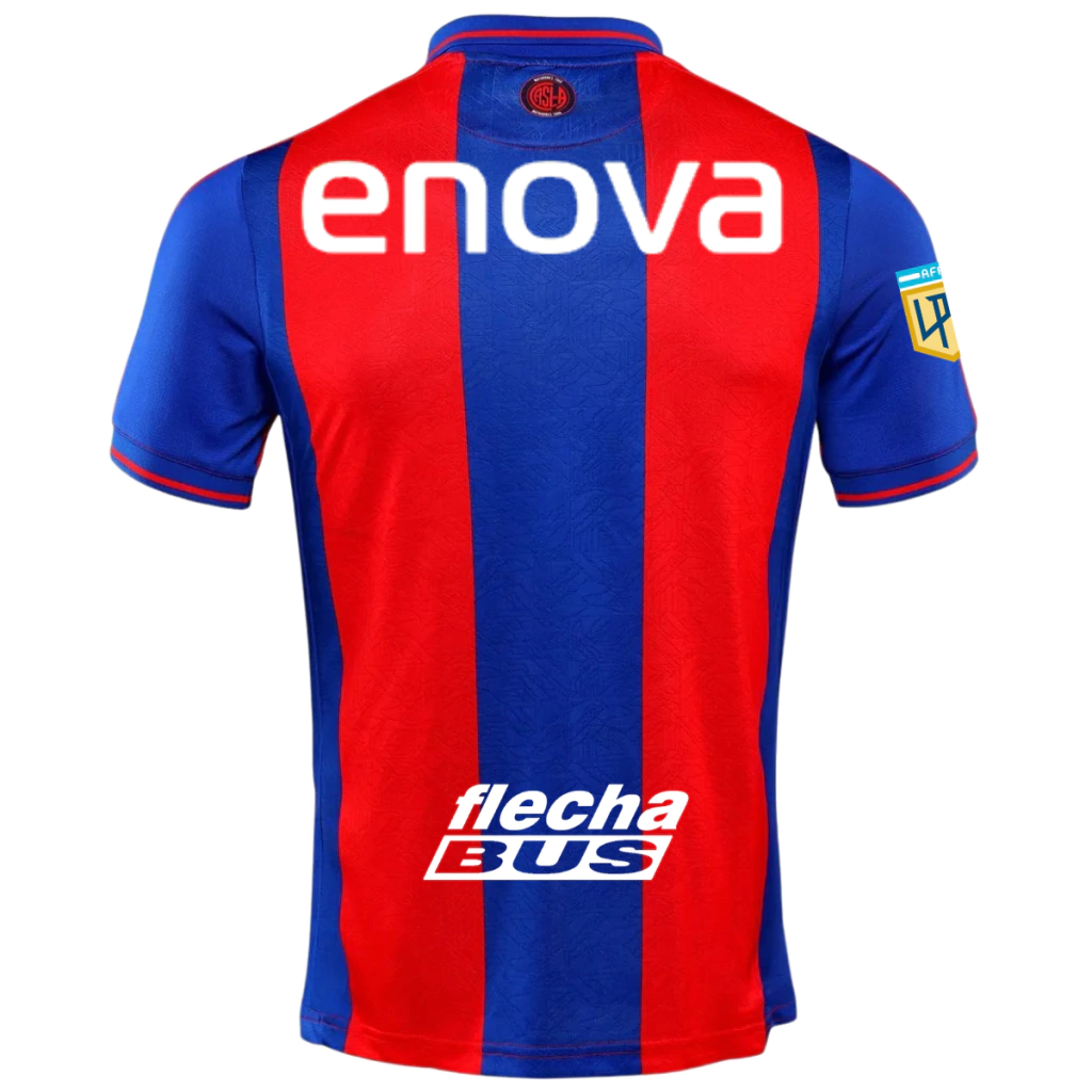 A camisa titular do San Lorenzo 25/26 busca inspiração no uniforme de 1968, ano em que o clube conquistou o Campeonato Metropolitano, um título de grande importância nacional. O design apresenta um visual clássico, com faixas verticais mais largas e um jacquard especial no tecido, formado por corvos, símbolo marcante da equipe. A gola polo azul recebe um friso vermelho nas extremidades, padrão que se repete nos punhos, harmonizando com as mangas vermelhas, cuja parte superior é azul. No peito, o escudo do San Lorenzo aparece no lado esquerdo em sua versão circular, enquanto o logo da Atomik, em branco, está no lado direito. Na nuca, uma homenagem especial faz referência ao time campeão de 1968, conhecido como “Matadores”, exaltando um dos grandes momentos da história do clube.Nesta versão a camisa acompanha os patrocinios do Ciclón para a temporada. Nesta versão a camisa acompanha o patch de participação no Campeonato Argentino.